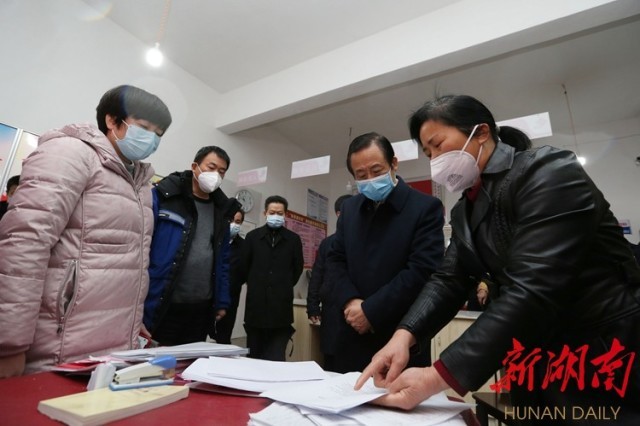 2月15日上午,胡衡華在長沙市岳麓區(qū)澗塘社區(qū),督查外來流動(dòng)人口和老舊小區(qū)居民的疫情防控情況。通訊員 攝
