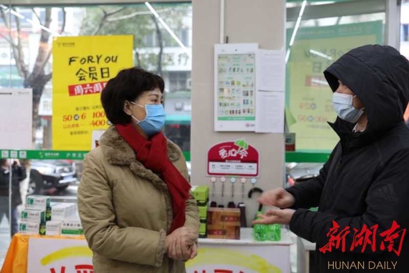 2月15日上午,省委常委、省委統(tǒng)戰(zhàn)部部長黃蘭香在常德市武陵區(qū),檢查口罩等防護(hù)物資市場供應(yīng)情況。 李白 攝