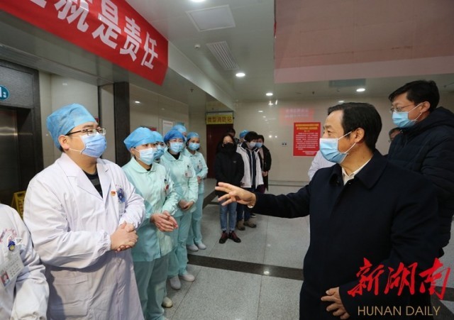 許達(dá)哲說,要提高收治率和治愈率,降低感染率和病亡率,靠的就是廣大一線醫(yī)務(wù)人員。希望大家發(fā)揮特別能吃苦、特別能戰(zhàn)斗、特別能攻關(guān)、特別能奉獻(xiàn)的精神,靠你們的專業(yè)素質(zhì),靠你們的愛心醫(yī)德,幫助患者早日康復(fù),代表7000多萬三湘兒女感謝大家!