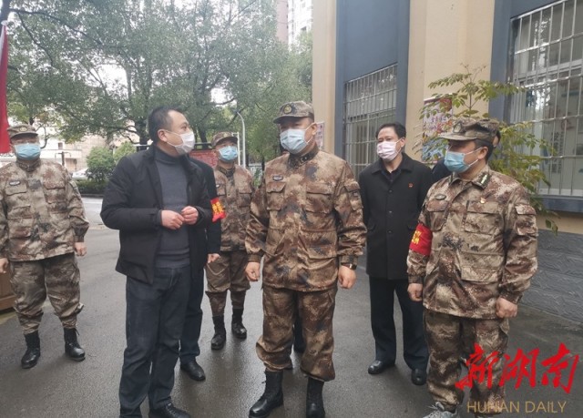 2月15日下午,省委常委、省軍區(qū)政治委員馮毅在鶴城區(qū)迎豐街道華峰社區(qū)督導(dǎo)檢查疫情防控工作。 湖南日報(bào)記者 施泉江 攝