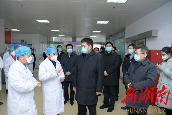 2月15日,張宏森在永州市中心醫(yī)院冷水灘院區(qū)調(diào)研救治工作并慰問醫(yī)護(hù)人員。永州日報(bào)記者 何繼鳳 攝。
