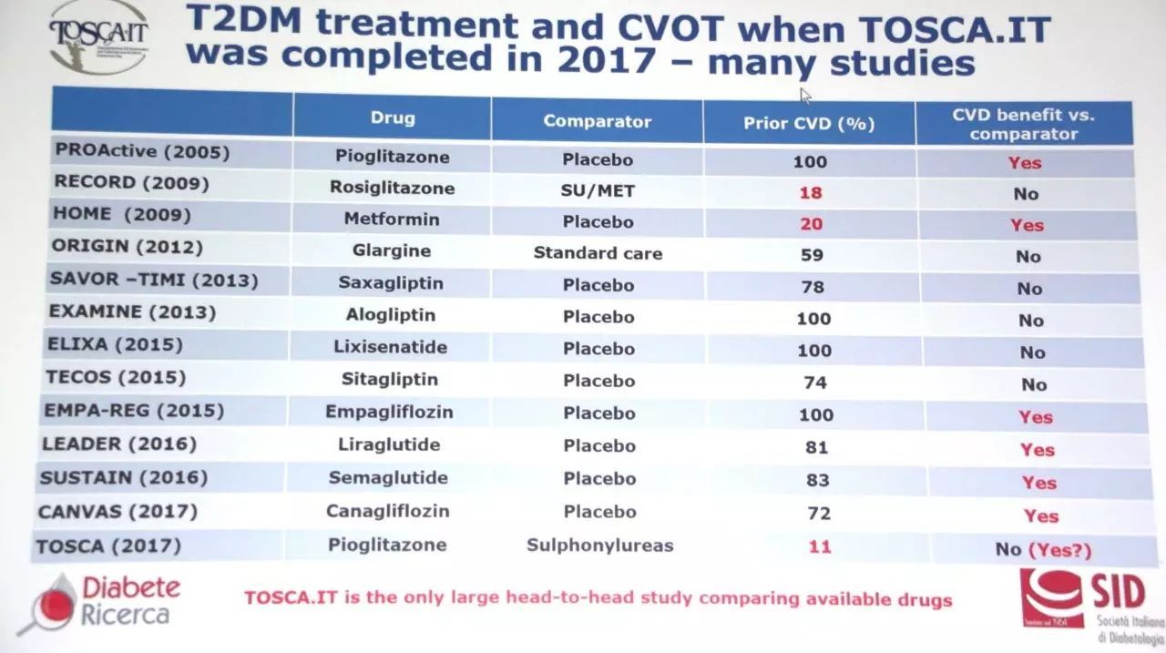 9月13日,迄今全球唯一口服降糖藥頭對(duì)頭大型心血管結(jié)局研究——TOSCA.IT在EASD年會(huì)上發(fā)布!磺脲類與吡格列酮的“世紀(jì)大戰(zhàn)”,或?qū)m埃落定。