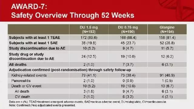 AWARD-7試驗表明,在伴有中重度慢性腎病的2型糖尿病患者中,與甘精胰島素相比,杜拉魯肽可實現(xiàn)相當?shù)难强刂?,更大程度的體重減輕,以及更低的低血糖事件發(fā)生率。